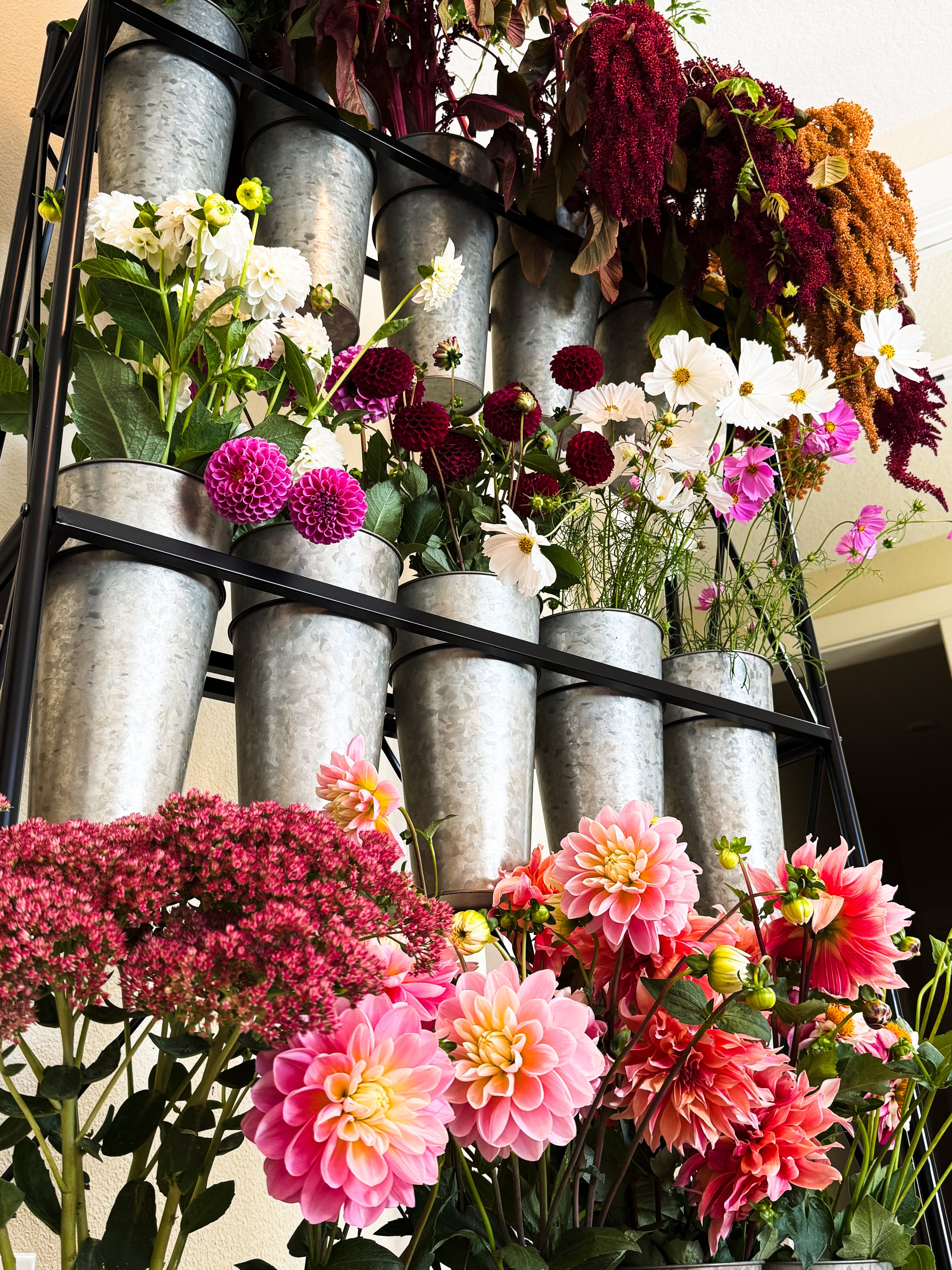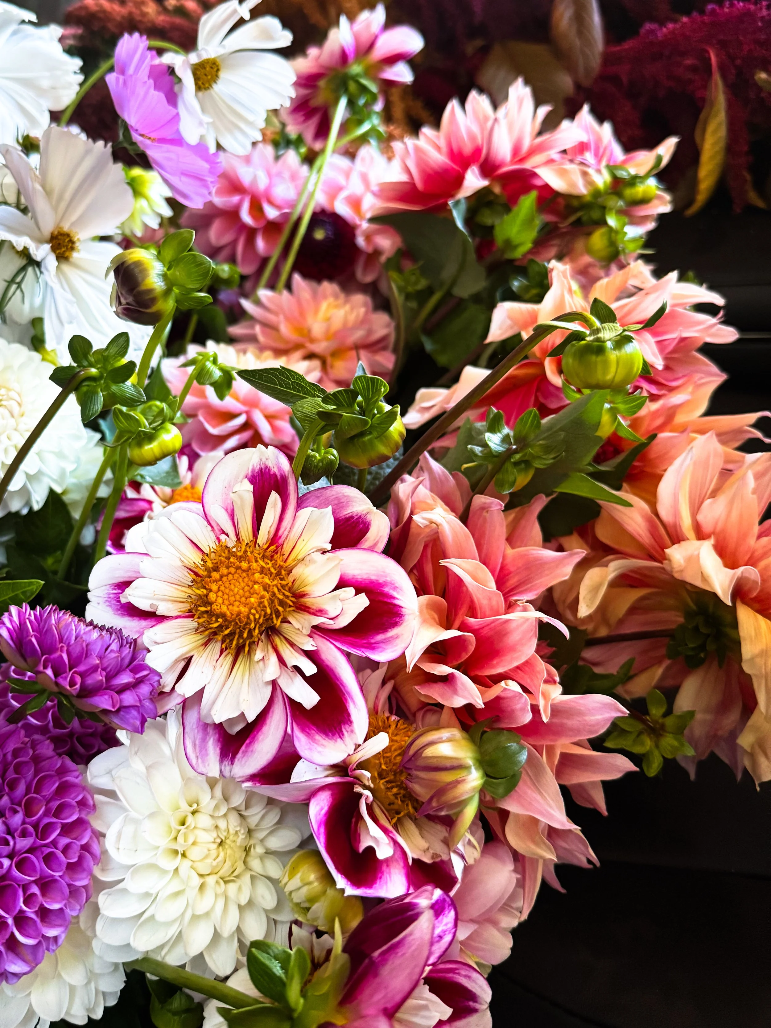 Guests select from a curated collection of seasonal flowers and are guided in creating an arrangement of their own. The experience blends floral design, creative exploration, and conversation in a relaxed and beautifully styled environment.